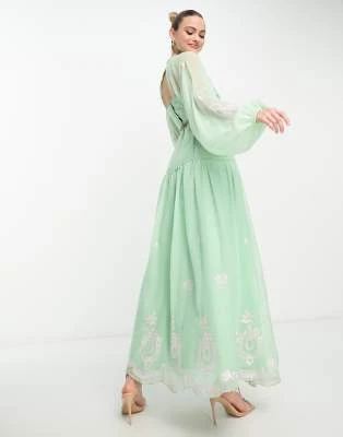 ASOS DESIGN Tall – Vestito Lungo Con Maniche A Campana Blu Cobalto Con Pieghe E Cintura