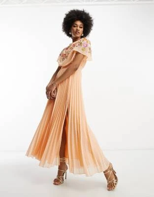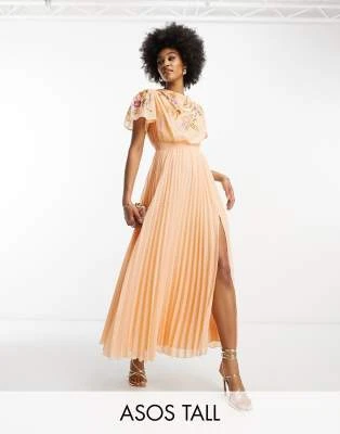 ASOS DESIGN Tall – Vestito Midi In Plumetis A Pieghe Ricamato Color Kaki Con Scollo Ad Anello