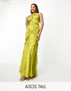 ASOS DESIGN Tall – Vestito Lungo Con Maniche A Campana Blu Cobalto Con Pieghe E Cintura
