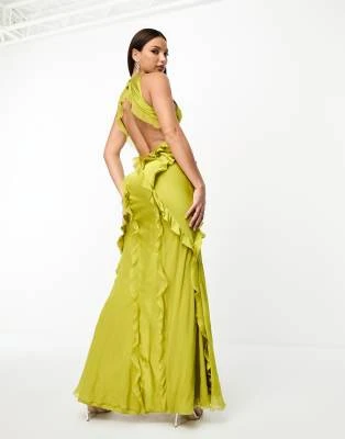 ASOS DESIGN Tall – Vestito Lungo Con Maniche Con Volant E Aperto Dietro In Raso Nero A Pois
