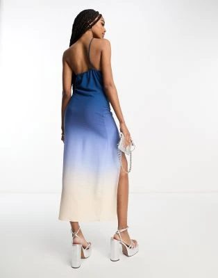 Esclusiva In The Style Tall – Vestito Lungo In Raso Blu Con Scollo Ad Anello E Lacci Sul Retro