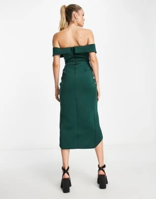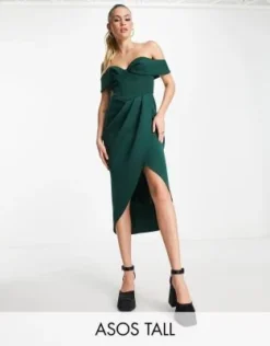 ASOS DESIGN Tall – Vestito In Raso Lime A Fiori Con Gonna Al Polpaccio E Maniche Con Volant Multipli