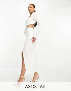 ASOS DESIGN Tall – Vestito Da Giorno Midi Nero Con Incrocio E Cut-out