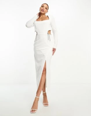 ASOS DESIGN Tall – Vestito Midi Con Spalle Scoperte E Perline Decorative Rosa A Portafoglio
