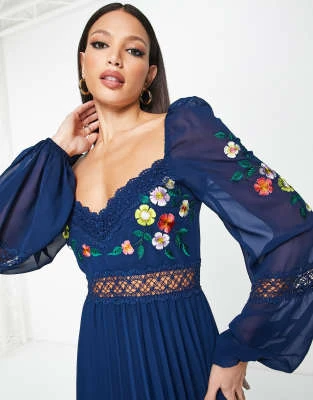ASOS DESIGN Tall – Vestito Lungo Con Maniche A Campana Blu Cobalto Con Pieghe E Cintura