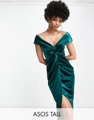 ASOS DESIGN Tall – Vestito Midi Con Scollo Profondo E Fusciacca Verde