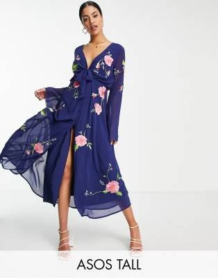 TFNC Tall – Vestito Lungo Da Damigella Con Fiocco Sul Retro Blu Navy