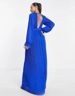 ASOS DESIGN Tall – Vestito Lungo Con Maniche A Campana Blu Cobalto Con Pieghe E Cintura