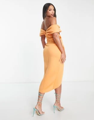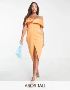 ASOS DESIGN Tall – Vestito Midi Con Spalle Scoperte E Perline Decorative Rosa A Portafoglio
