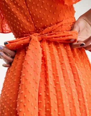 ASOS DESIGN Tall – Vestito Midi In Plumetis A Pieghe Ricamato Color Kaki Con Scollo Ad Anello