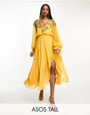 ASOS DESIGN Tall – Vestito Midi Con Scollo Profondo E Fusciacca Verde