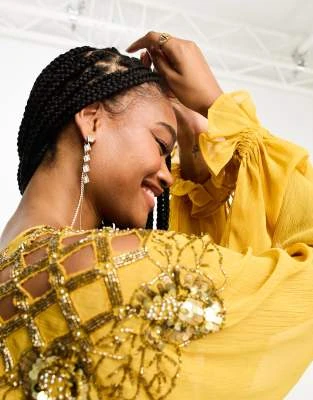 ASOS DESIGN Tall – Vestito Lungo Con Maniche Con Volant E Aperto Dietro In Raso Nero A Pois