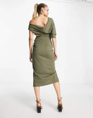 ASOS DESIGN Tall – Vestito Midi Con Scollo Profondo E Fusciacca Verde