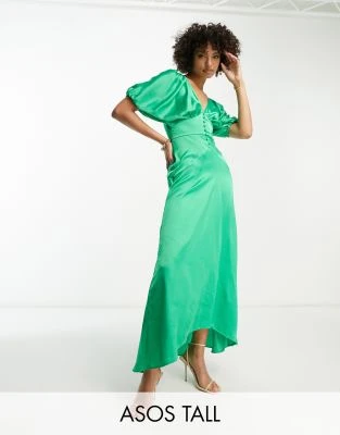 ASOS DESIGN Tall – Vestito Midi Accollato Marrone Cioccolato A Portafoglio Arricciato