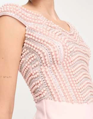 ASOS DESIGN Tall – Vestito Midi In Plumetis A Pieghe Ricamato Color Kaki Con Scollo Ad Anello