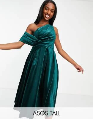 ASOS DESIGN Tall – Vestito Camicia Corto Plissé Verde Acceso Con Dettaglio Avvolgente In Vita