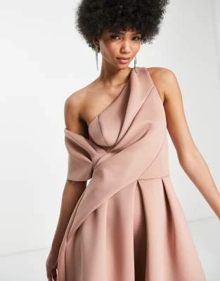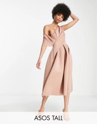 ASOS DESIGN Tall – Vestito Midi Accollato Marrone Cioccolato A Portafoglio Arricciato