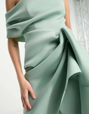 ASOS DESIGN Tall – Vestito In Raso Lime A Fiori Con Gonna Al Polpaccio E Maniche Con Volant Multipli