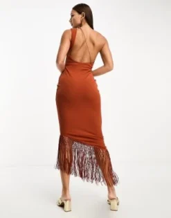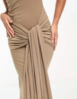 ASOS DESIGN Tall – Vestito Midi Accollato Marrone Cioccolato A Portafoglio Arricciato
