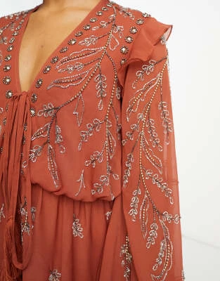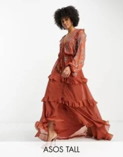 ASOS DESIGN Tall – Vestito Midi Plissé Arancione Con Strato Sovrapposto E Schiena Scoperta