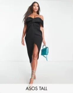 ASOS DESIGN Tall – Vestito Midi Con Scollo Profondo E Fusciacca Verde