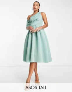 ASOS DESIGN Tall – Vestito Midi Con Scollo Profondo E Fusciacca Verde