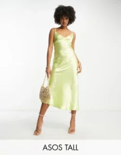 Vesper Tall – Vestito Midi Con Spallina Sottile E Spacco Frontale Verde