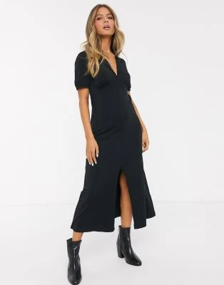 ASOS DESIGN – Vestito Milkmaid Midi Nero E Rosso A Fiori Con Dettagli Arricciati E Maniche Svasate
