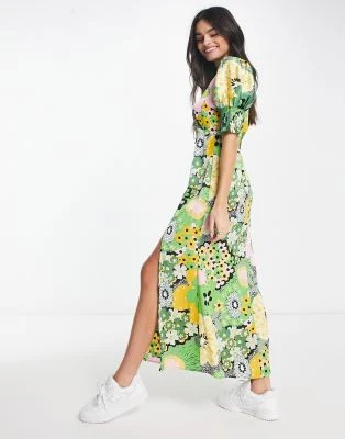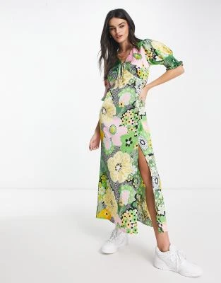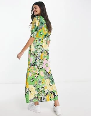 ASOS DESIGN – Vestito Milkmaid Midi Nero E Rosso A Fiori Con Dettagli Arricciati E Maniche Svasate