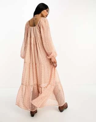 ASOS DESIGN – Vestito Grembiule Midi A Balze In Chiffon Con Stampa Di Margherite, Scollo A V E Maniche Lunghe