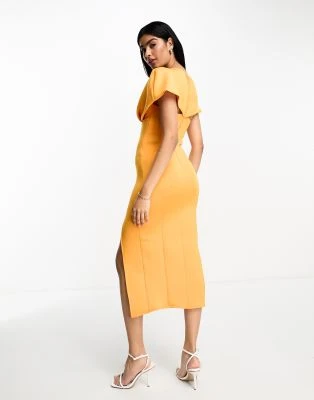 ASOS DESIGN – Vestito Da Giorno Midi Arricciato Con Maniche Ad Aletta Bianco Con Stampa Con Ciliegie