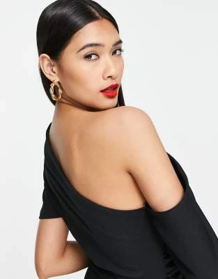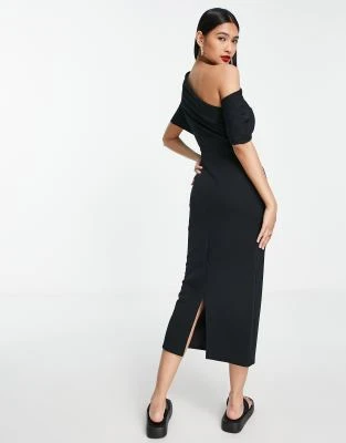 ASOS DESIGN – Vestito Milkmaid Midi Nero E Rosso A Fiori Con Dettagli Arricciati E Maniche Svasate