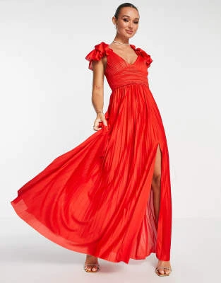 ASOS DESIGN Tall – Vestito Midi Plissé Arancione Con Strato Sovrapposto E Schiena Scoperta