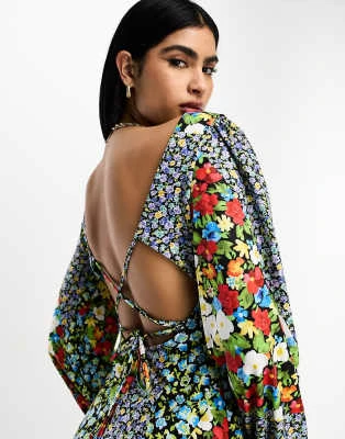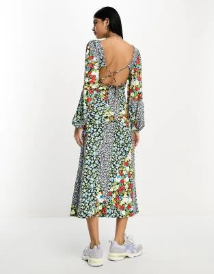 ASOS Maternity ASOS DESIGN Maternity – Vestito Midi Lilla Con Scollo Ad Anello E Maniche Con Volant