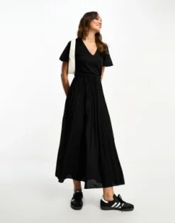 ASOS DESIGN – Vestito Da Giorno Midi Arricciato Con Maniche Ad Aletta Bianco Con Stampa Con Ciliegie