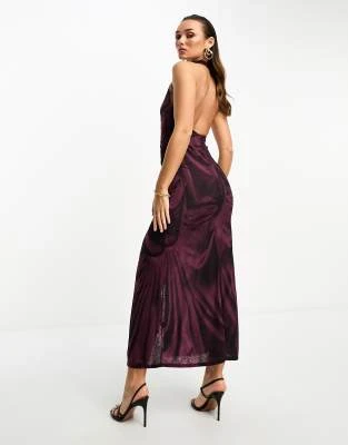 ASOS Maternity ASOS DESIGN Maternity – Vestito Midi Lilla Con Scollo Ad Anello E Maniche Con Volant