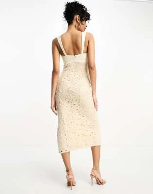 ASOS Maternity ASOS DESIGN Maternity – Vestito Midi Lilla Con Scollo Ad Anello E Maniche Con Volant