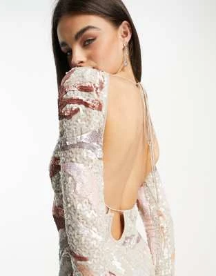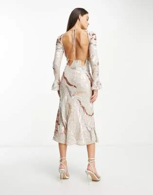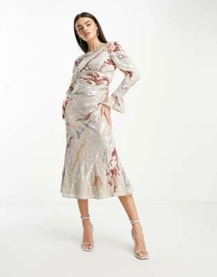 ASOS DESIGN – Vestito Milkmaid Midi Nero E Rosso A Fiori Con Dettagli Arricciati E Maniche Svasate
