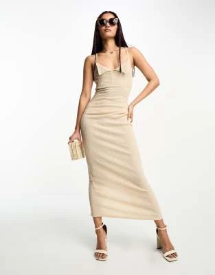 ASOS Maternity ASOS DESIGN Maternity – Vestito Midi Lilla Con Scollo Ad Anello E Maniche Con Volant