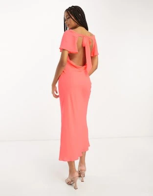 ASOS DESIGN – Vestito Da Giorno Midi Arricciato Con Maniche Ad Aletta Bianco Con Stampa Con Ciliegie