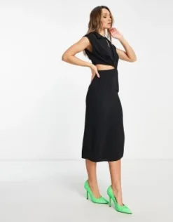 ASOS DESIGN – Vestito Milkmaid Midi Nero E Rosso A Fiori Con Dettagli Arricciati E Maniche Svasate