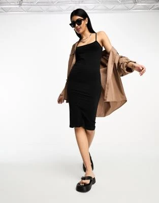 ASOS DESIGN – Vestito Milkmaid Midi Nero E Rosso A Fiori Con Dettagli Arricciati E Maniche Svasate