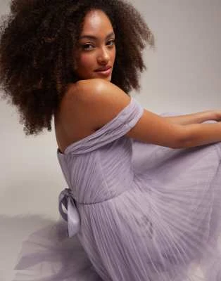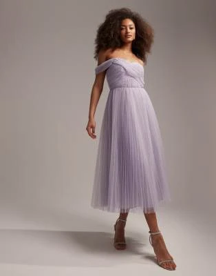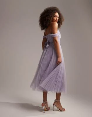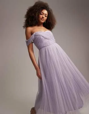 ASOS Maternity ASOS DESIGN Maternity – Vestito Midi Lilla Con Scollo Ad Anello E Maniche Con Volant