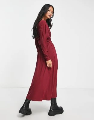 ASOS Maternity ASOS DESIGN Maternity – Vestito Midi Lilla Con Scollo Ad Anello E Maniche Con Volant