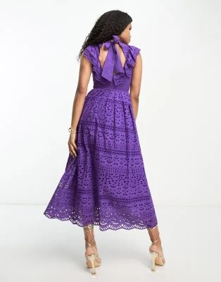 ASOS DESIGN – Vestito Milkmaid Midi Nero E Rosso A Fiori Con Dettagli Arricciati E Maniche Svasate