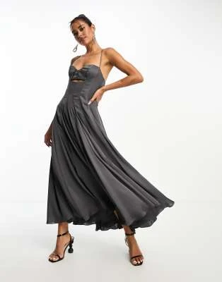 ASOS DESIGN – Vestito Milkmaid Midi Nero E Rosso A Fiori Con Dettagli Arricciati E Maniche Svasate