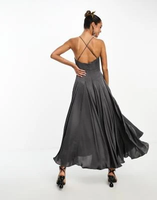 ASOS Maternity ASOS DESIGN Maternity – Vestito Midi Lilla Con Scollo Ad Anello E Maniche Con Volant