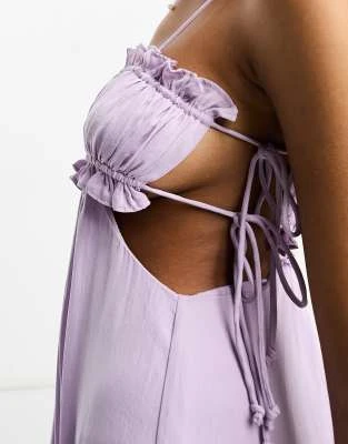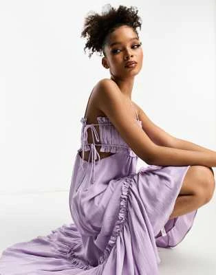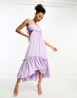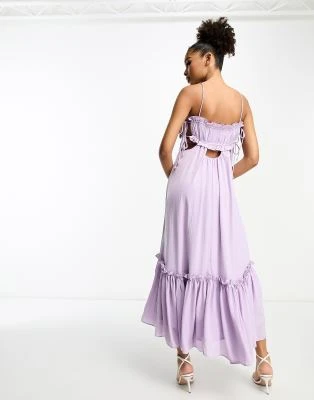 ASOS DESIGN – Vestito Milkmaid Midi Nero E Rosso A Fiori Con Dettagli Arricciati E Maniche Svasate