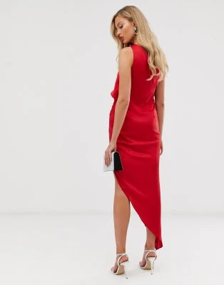 ASOS Maternity ASOS DESIGN Maternity – Vestito Midi Lilla Con Scollo Ad Anello E Maniche Con Volant