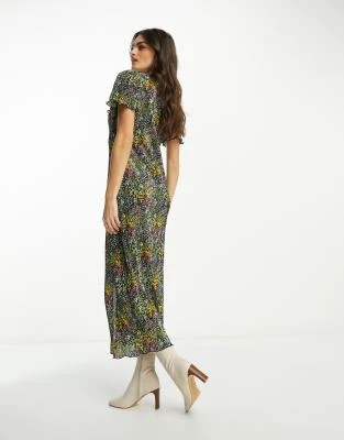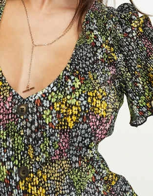 ASOS DESIGN – Vestito Milkmaid Midi Nero E Rosso A Fiori Con Dettagli Arricciati E Maniche Svasate